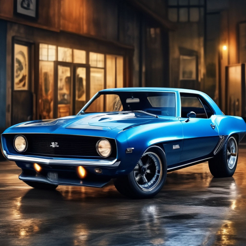 Голубой Chevrolet Camaro 1969, в …» — создано в Шедевруме