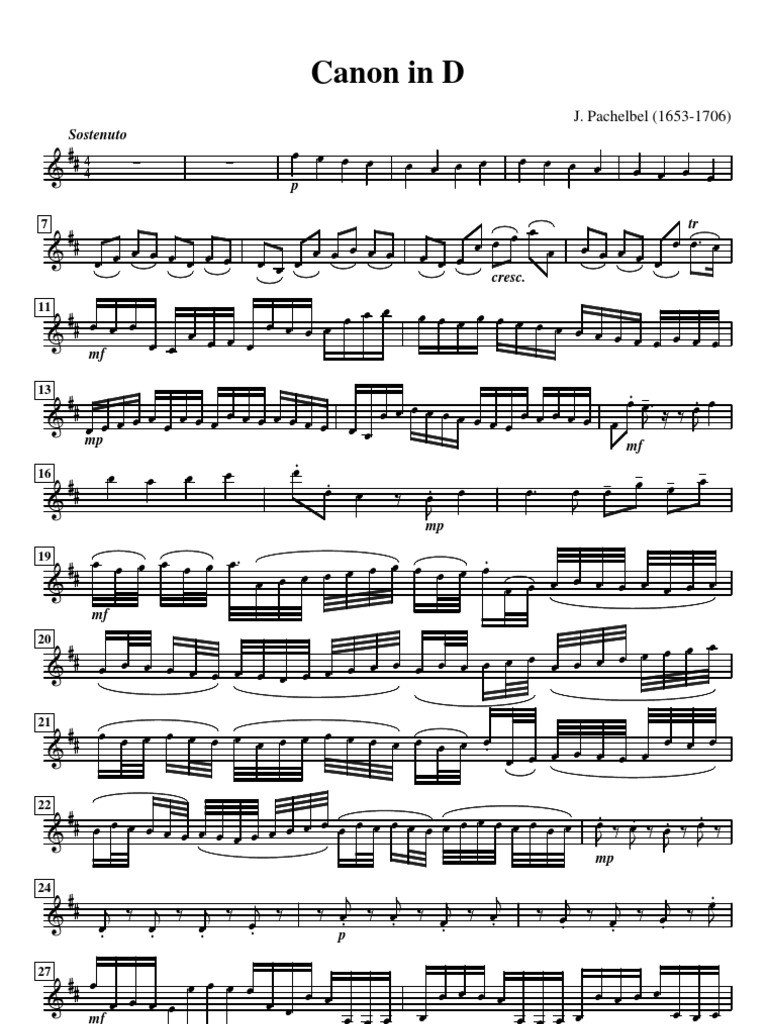 The Pachelbel Canon in D for Beginners Free Printable Sheet Music