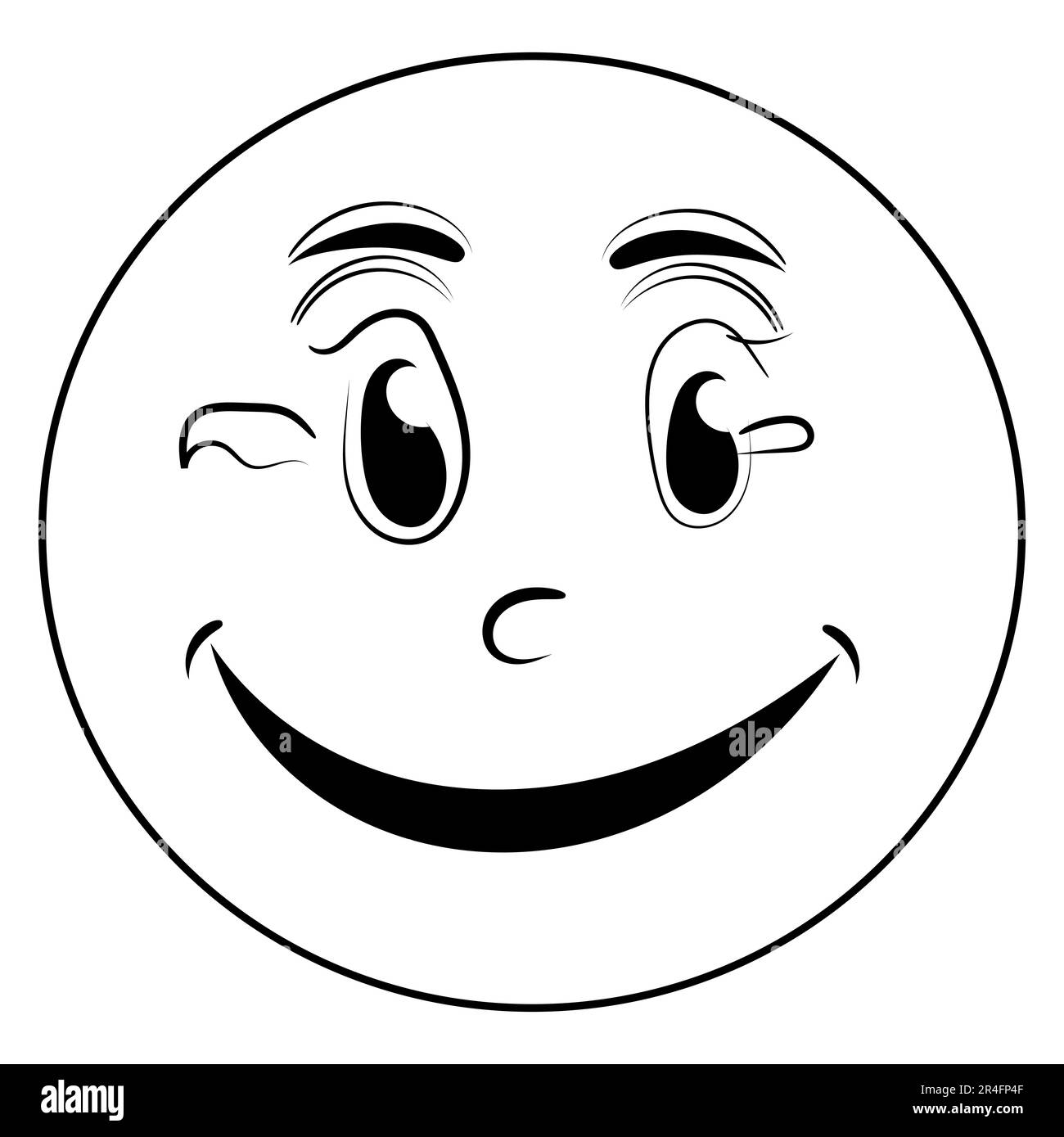 Gran cara sonriente cara feliz ilustración vectorial en blanco y negro Imagen Vector de stock - Alamy