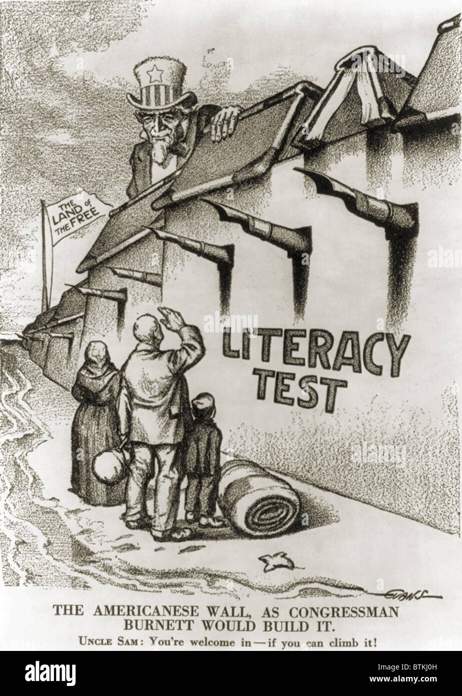 Caricatura Política de 1916 titulado La pared AMERICANESE -como el congresista BURNETT CONSTRUIRÍA. En los 1910's, el sentimiento anti-inmigrante resurgió y se tradujo en la restrictiva Ley de inmigración de 1924 Fotografía