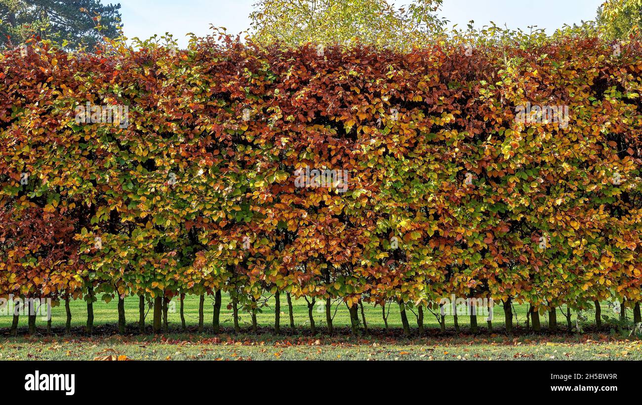 Hornbeam hedge in autumn (Carpinus betulus Stock Photo - Alamy