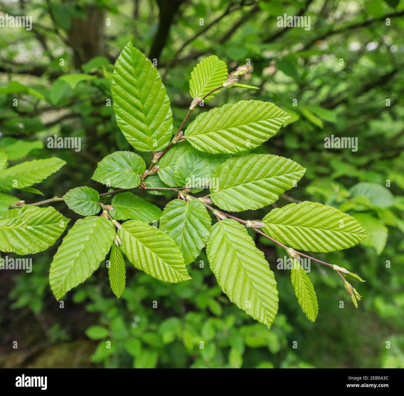 Carpino bianco foglie e ramoscelli Carpinus betulus Foto stock - Alamy