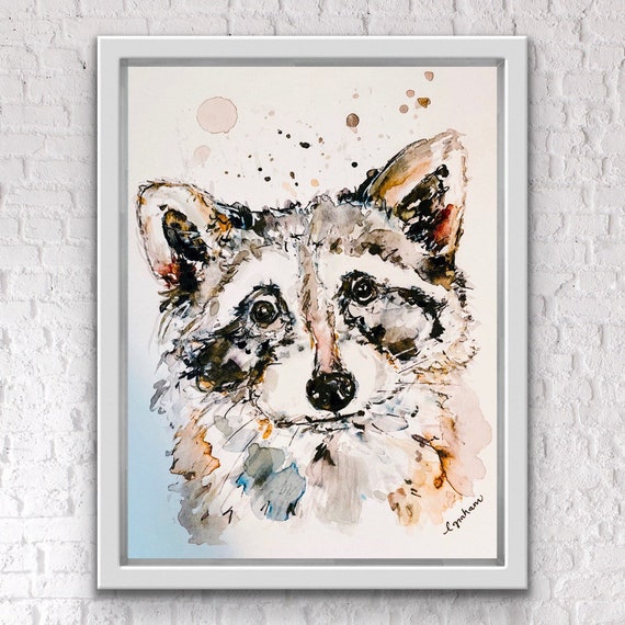 Impresión de acuarela de mapache, arte abstracto de la pared del mapache, decoración del mapache del bosque - Etsy México