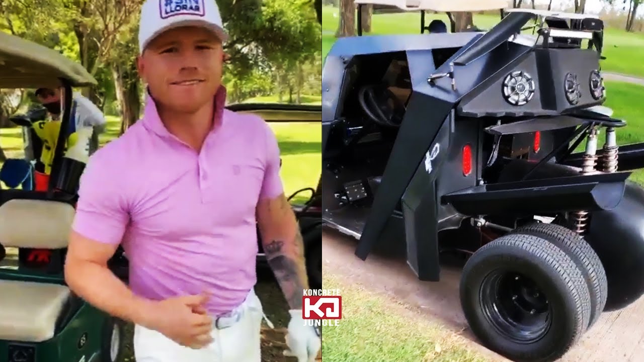 Saul Alvarez Bumping Corridos On The Golf Course In $50,000 Batmobile Golf Cart