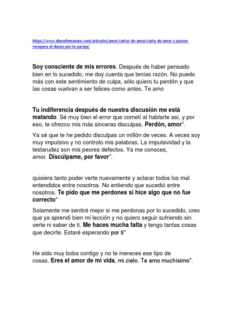 Carta De Amor Pidiendo Perdon