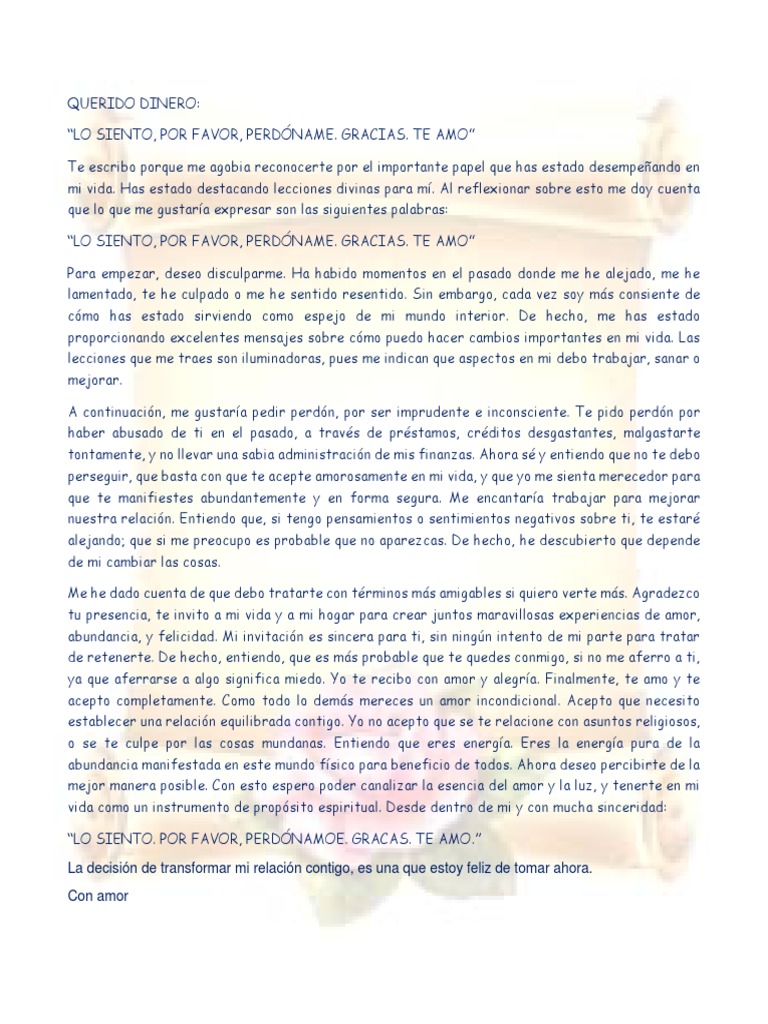 Carta Al Dinero Ley de Atraccion y Abundancia | PDF | Perdón | Amor