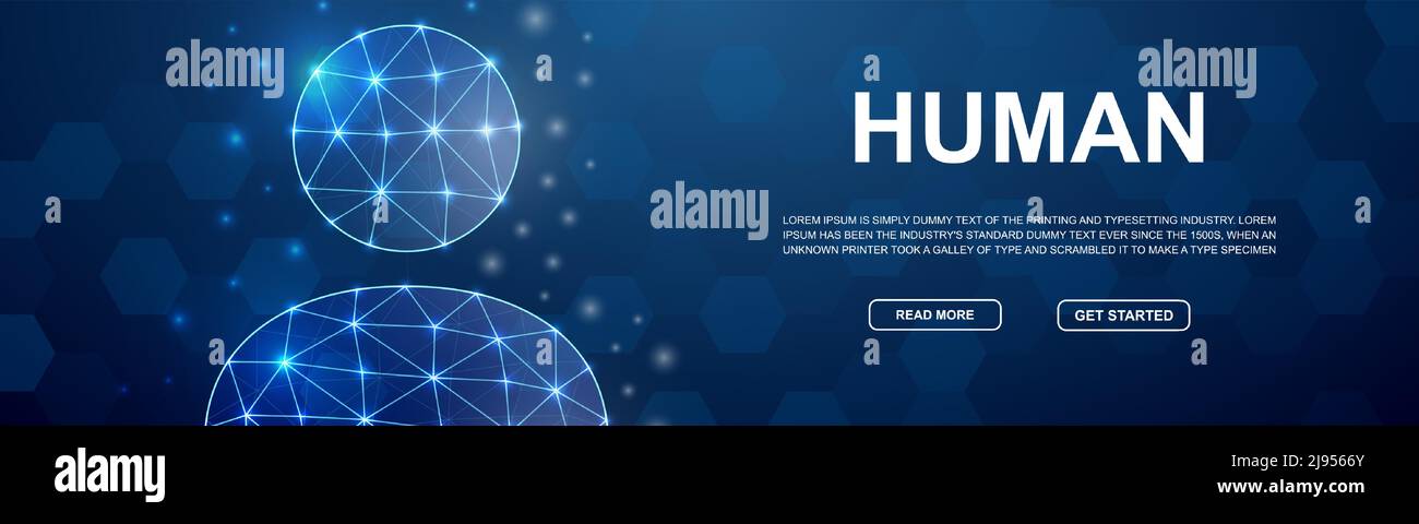 Usuario avatar 3D bajo símbolo de poli para banner de promoción. Concepto de ilustración de plantilla de diseño de trabajo en equipo. Ilustración de cartel de perfil poligonal horizontal Imagen Vector de