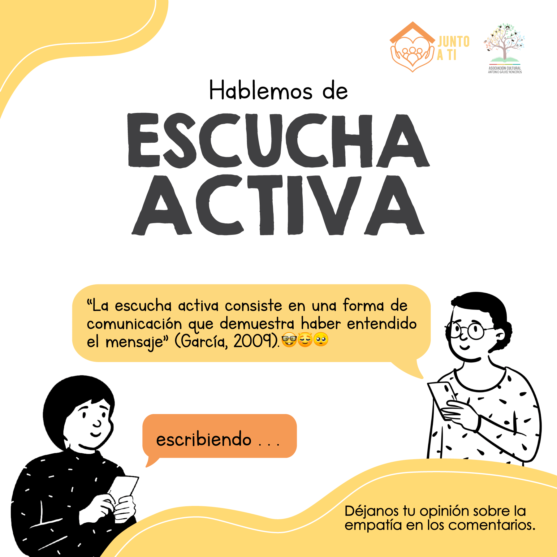 Asociación Cultural Antonio Gálvez Ronceros on X: "☝ 𝗛𝗮𝗯𝗹𝗲𝗺𝗼𝘀 𝗱𝗲 𝗹𝗮 𝗘𝘀𝗰𝘂𝗰𝗵𝗮 𝗔𝗰𝘁𝗶𝘃𝗮... 🥰😊 🎈 La escucha activa, a través de una comunicación clara y efectiva — que pueda responder preguntas y