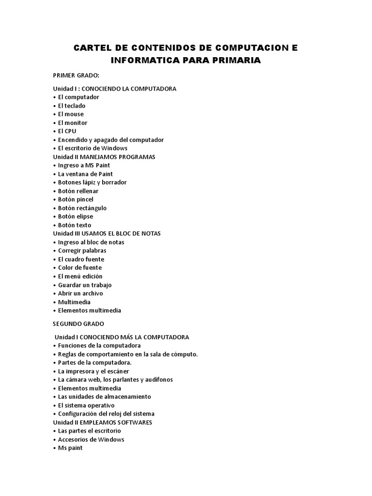 Cartel de Contenidos de Computacion e Informatica para Primaria ...