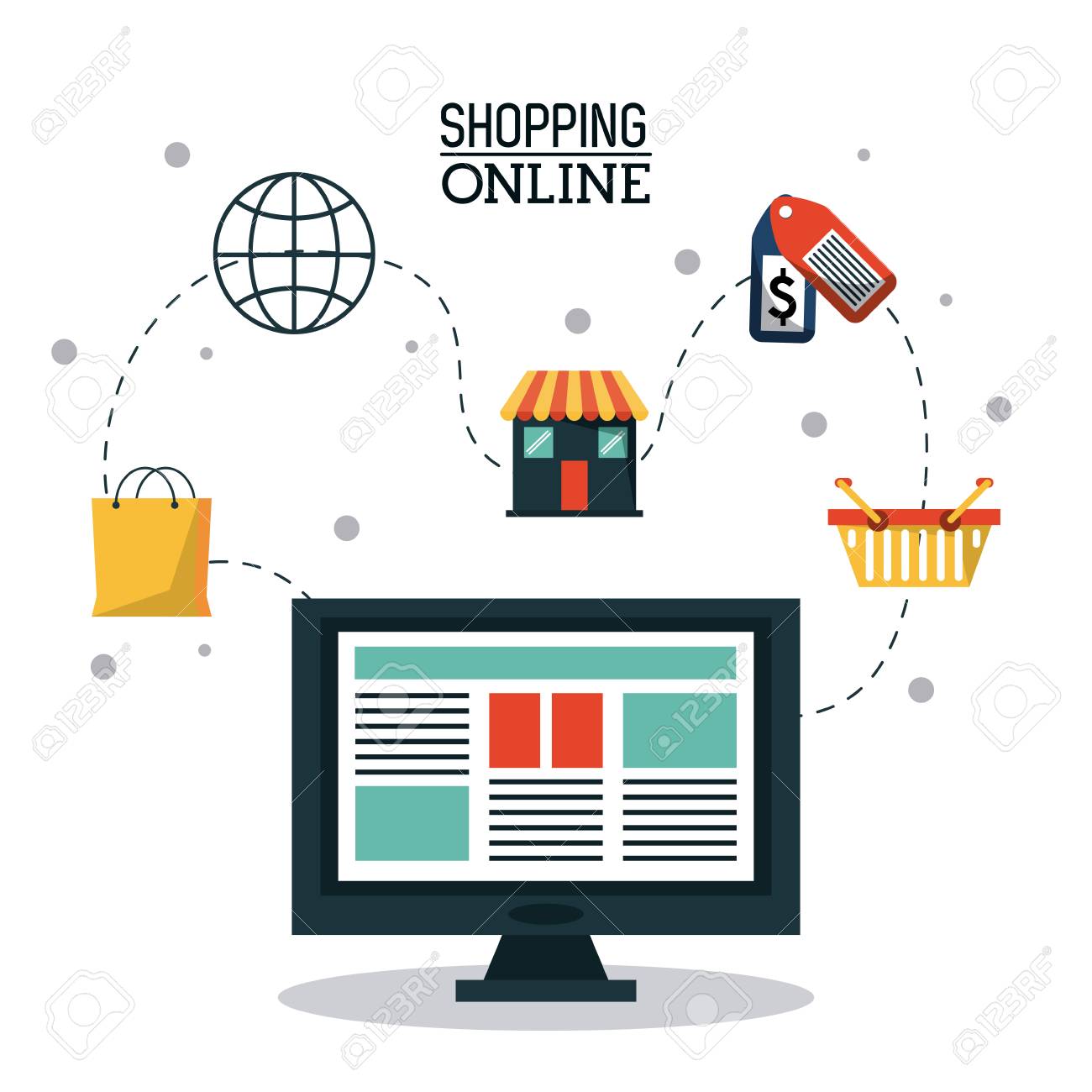 Cartel Colorido De Compras En Línea Con Computadora De Escritorio ...