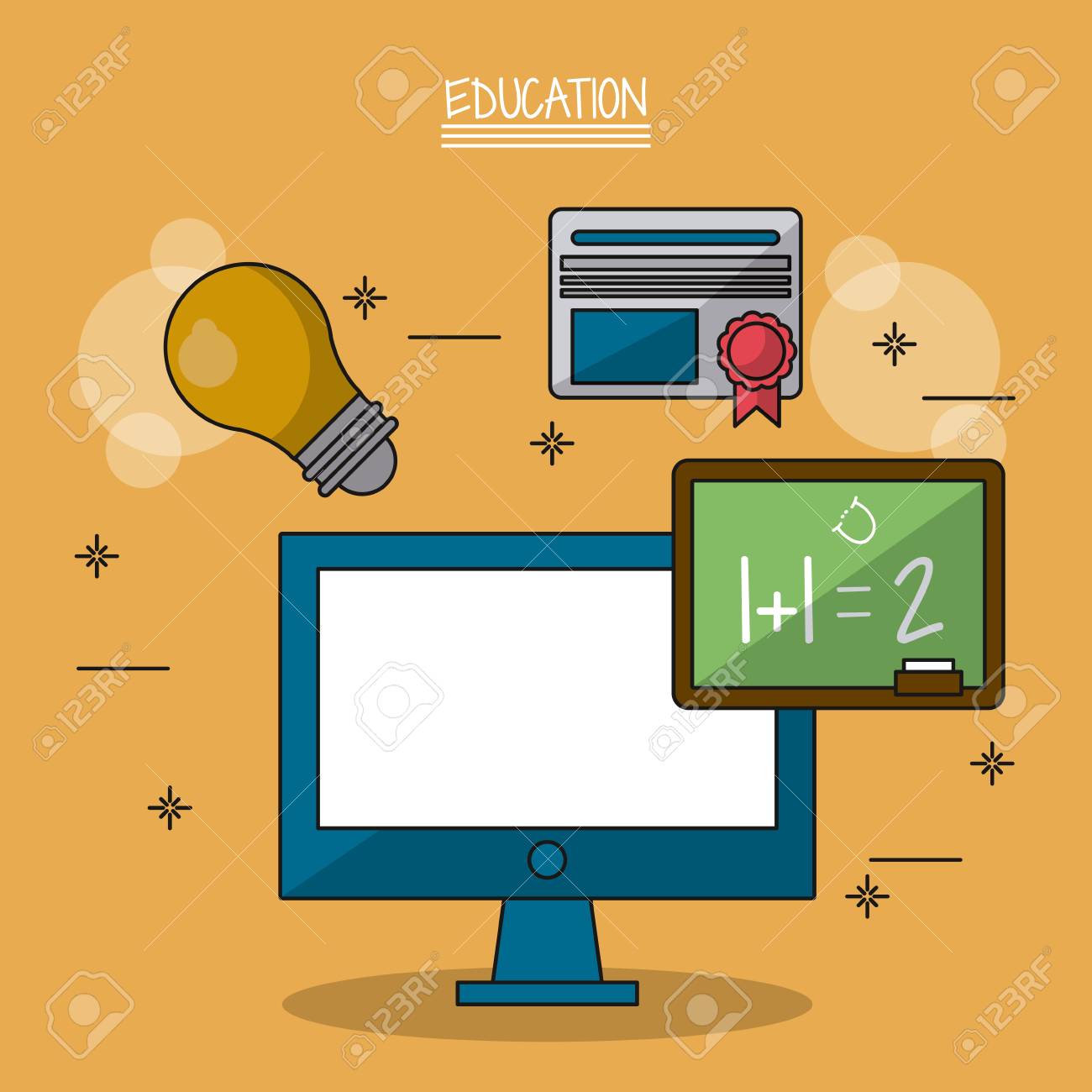 Colorido Cartel De La Educación Con La Computadora Y La Pizarra En ...