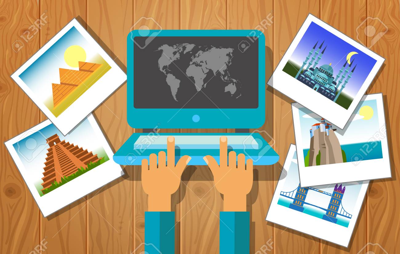 Diseño De Carteles De Viaje Manos Humanas Usando La Computadora ...