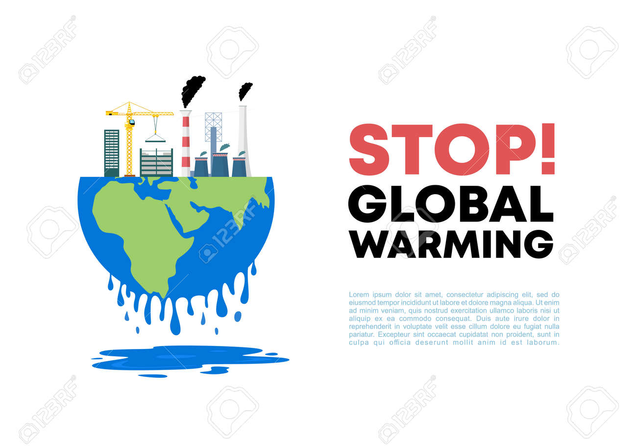 Detener El Cartel De Banner De Fondo De Calentamiento Global Para El Cambio Climático De La Tierra Verde Ilustraciones svg, vectoriales, clip art vectorizado libre de derechos. Image 181048549