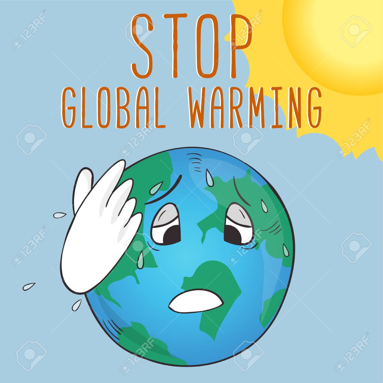 Cartel Ecológico Con Estilo De Dibujos Animados Tierra Y Texto "detener El Calentamiento Global" Ilustraciones svg, vectoriales, clip art vectorizado libre de derechos. Image 86478471