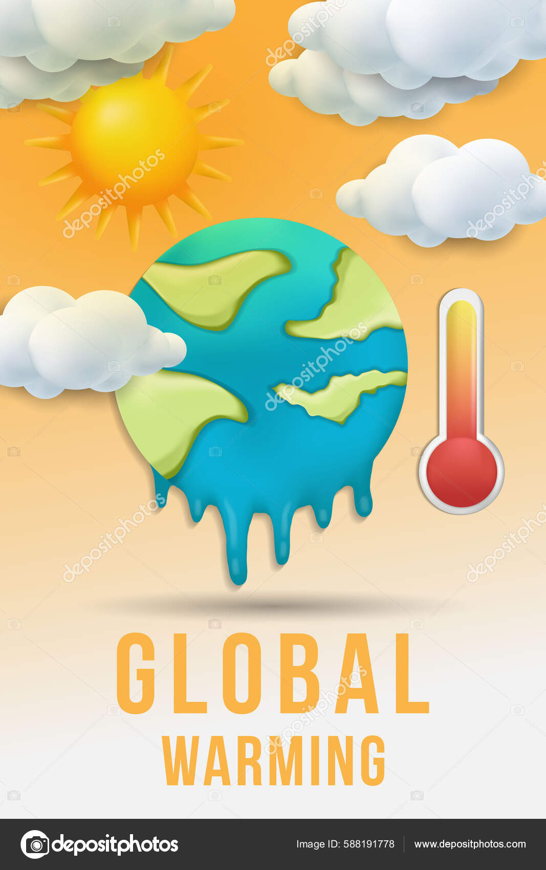 Cartel de calentamiento global con tierra derretida Imagen Vector de stock - Alamy