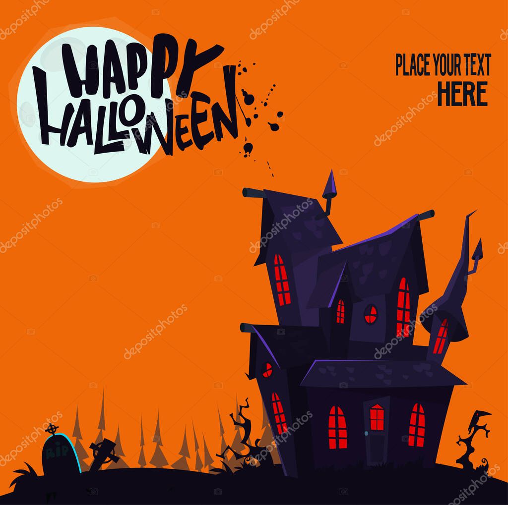 Casa embrujada antigua y aterradora con fantasmas. Halloween dibujos animados de fondo ilustración. Diseño de cartel o cartel de invitación para la fiesta de Halloween Imagen Vector de stock - Alamy
