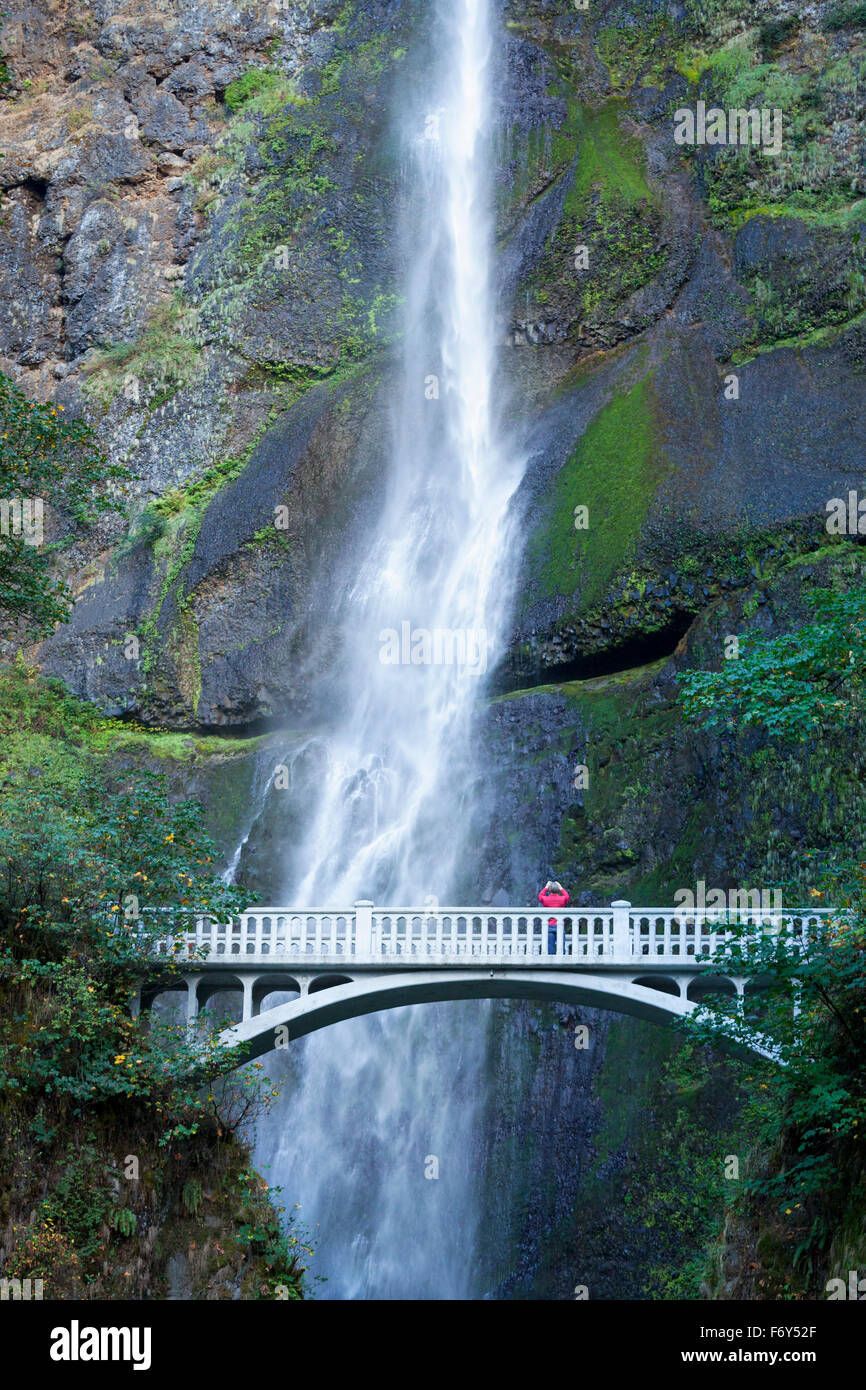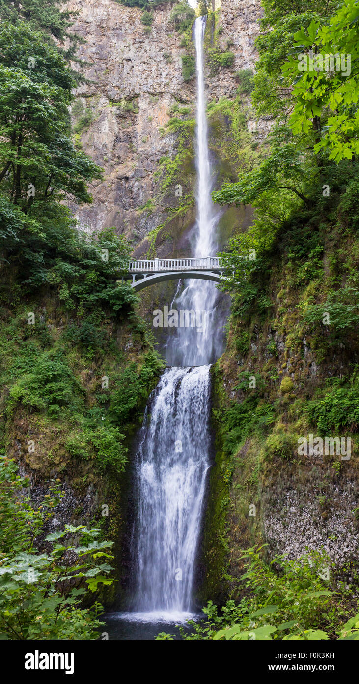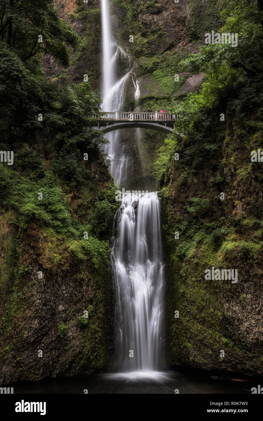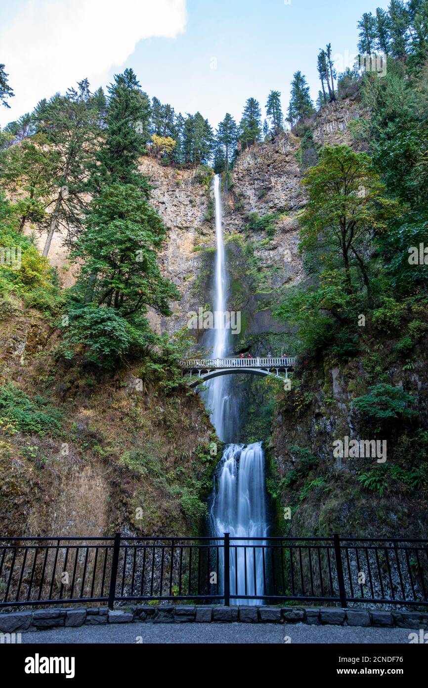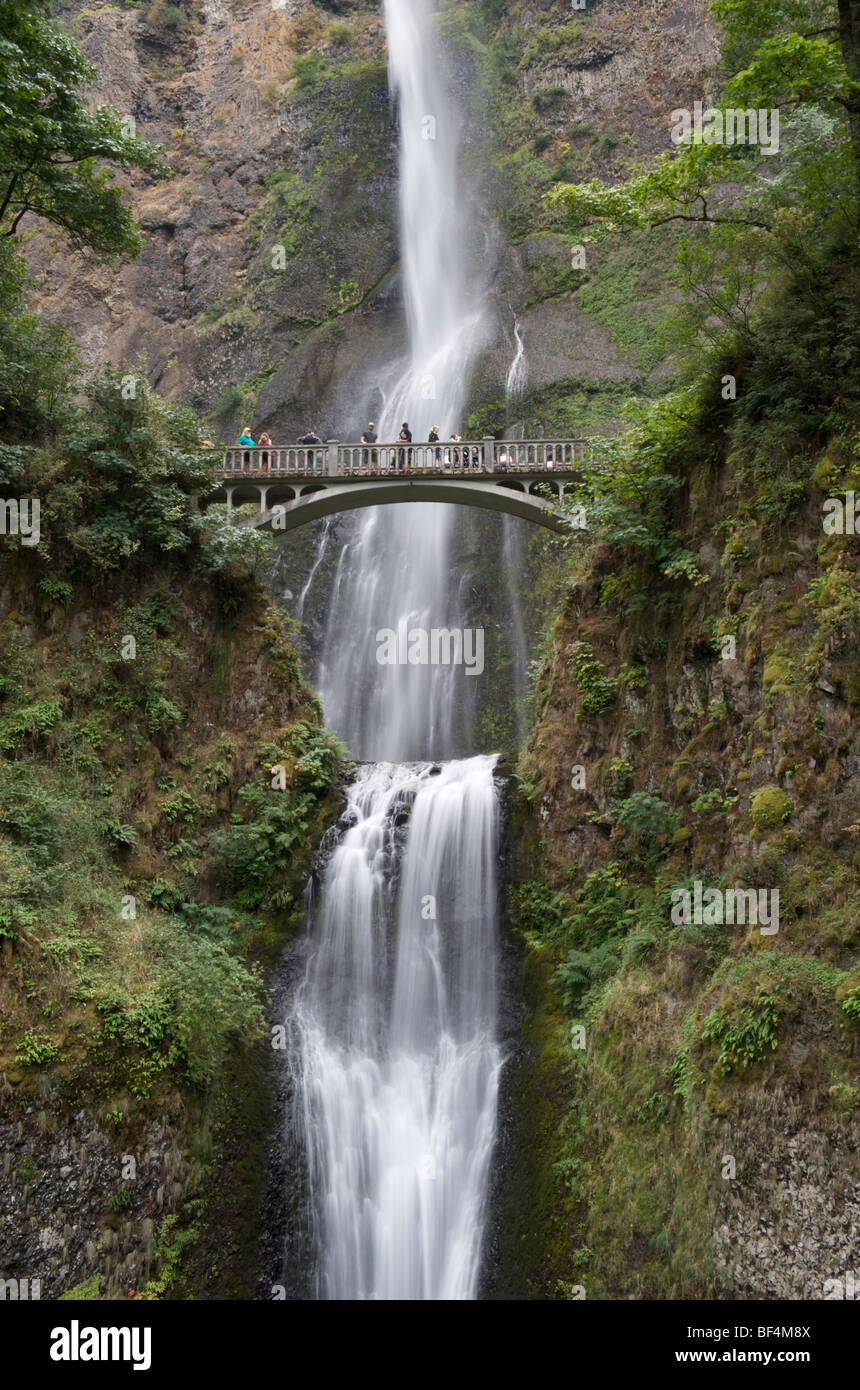 Two-level waterfalls with pedestrian bridge, Multnomah Falls, Portland, Oregon, USA Stock Photo - Alamy