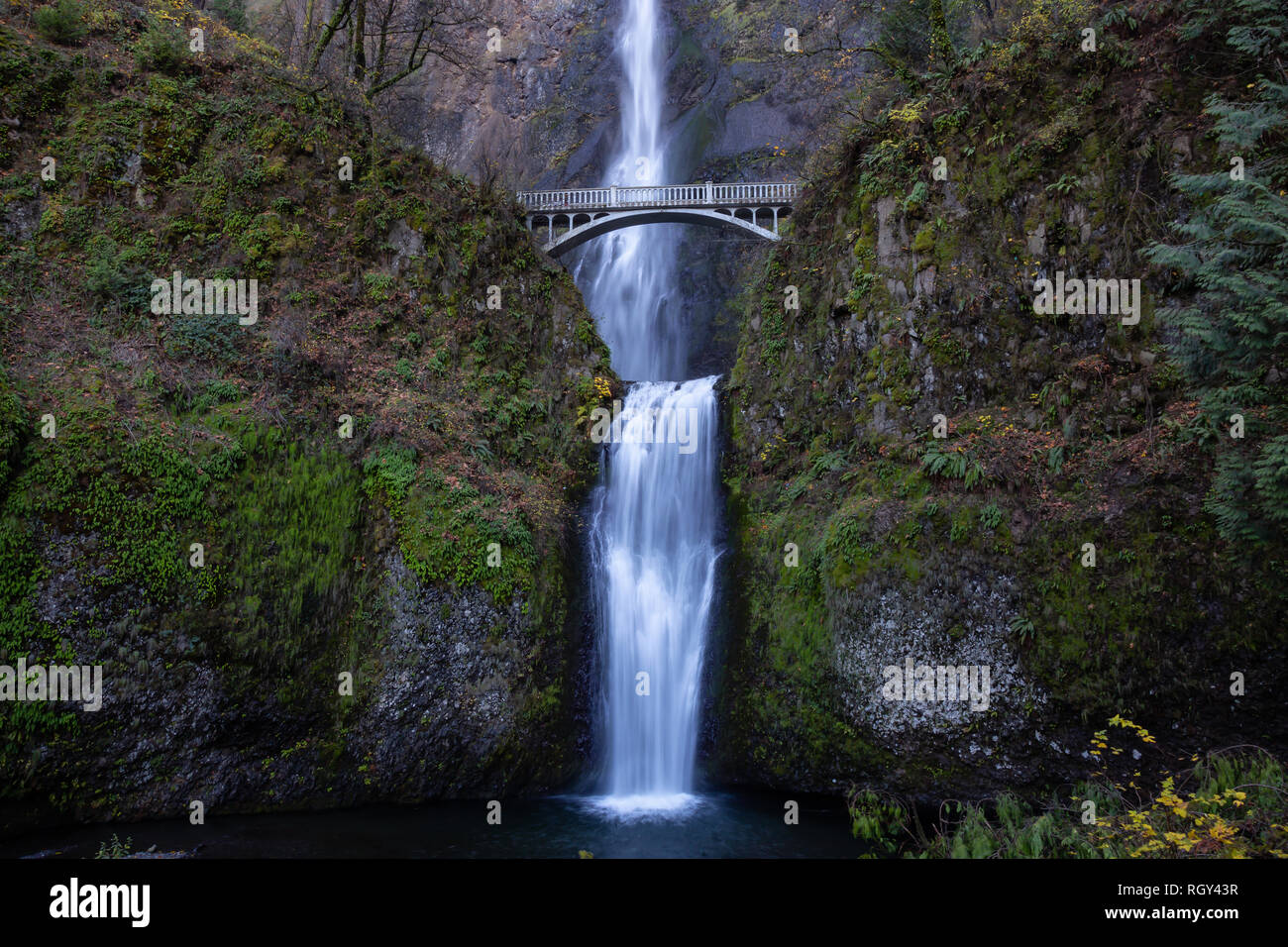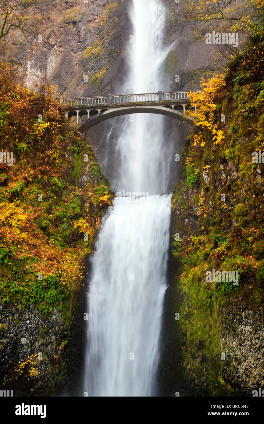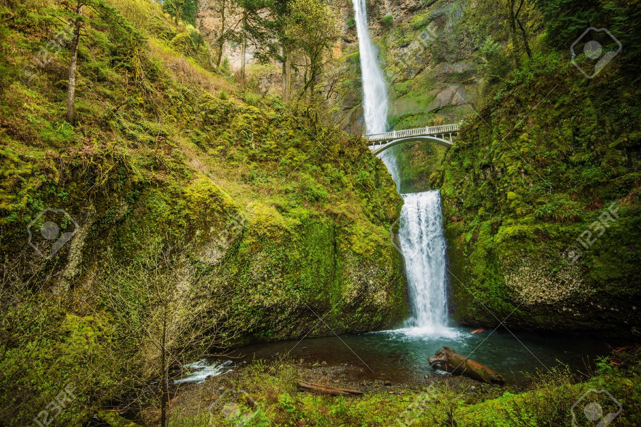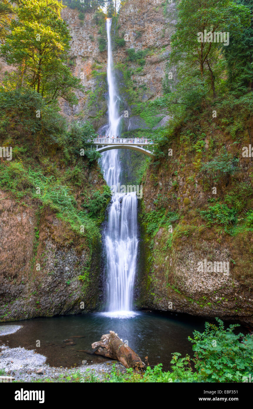 Two-level waterfalls with pedestrian bridge, Multnomah Falls, Portland, Oregon, USA Stock Photo - Alamy