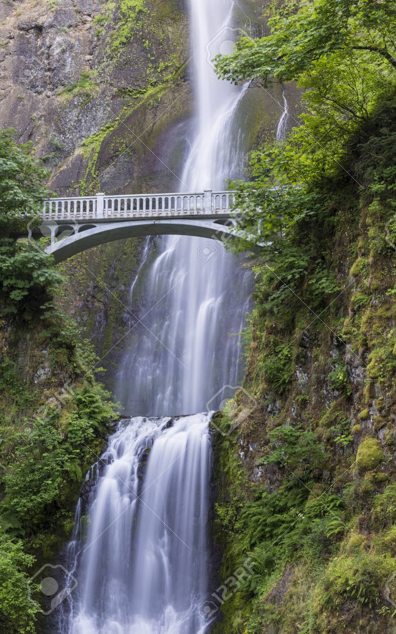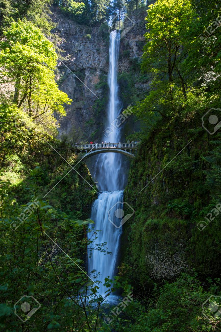 A Footbridge Arches Over Multnomah Falls, On Of The Tallest Waterfalls In The U.S., Near Portland, Oregon Stock Photo, Picture and Royalty Free Image. Image 44125504.