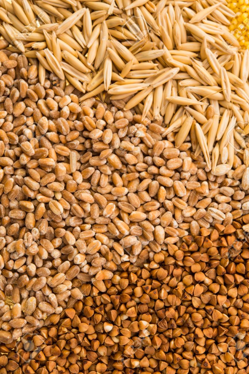 Colección Conjunto De Cereales: Trigo, Cebada, Avena, Maíz, Mijo, Arroz, Trigo Sarraceno, Primer Fotos, retratos, imágenes y fotografía de archivo libres de derecho. Image 54588964