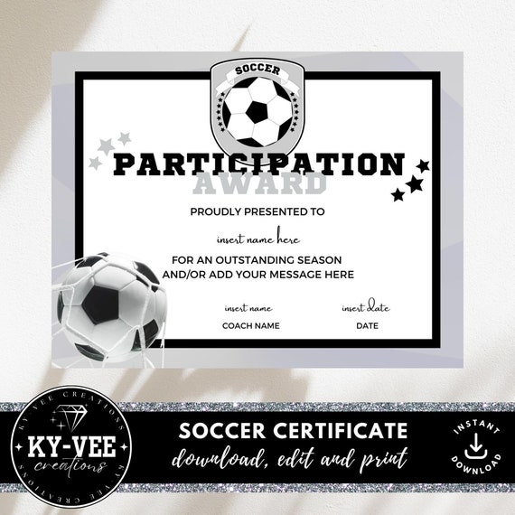 Certificado de participación de fútbol, DESCARGA INSTANTE, plantilla de certificado de fútbol editable, premio de celebración del equipo de fútbol imprimible - Etsy España