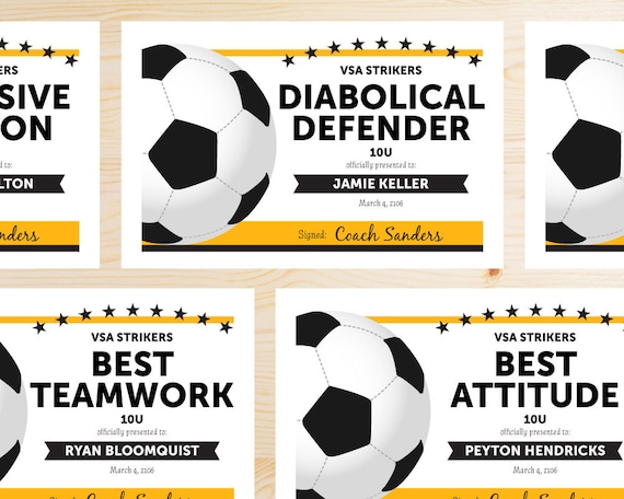15 certificados de premios de fútbol imprimibles DESCARGA INSTANTE, plantillas de certificados de fútbol editables, premio del equipo de fútbol, paquete de certificados de fútbol - Etsy México