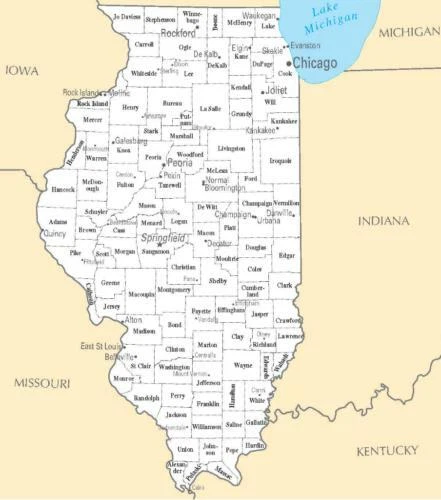ILLINOIS STATE COUNTY MAP GLOSSY POSTER PICTURE PHOTO PRINT city chicago 3334 | eBay