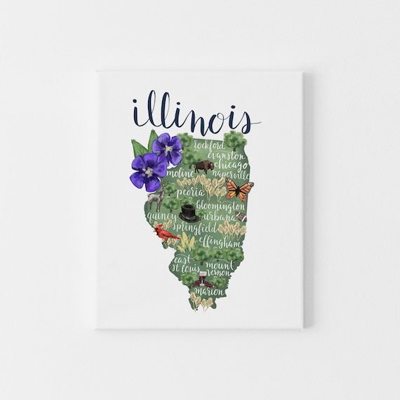 Regalo del mapa del estado de Illinois, ciudad natal ilustrada, punto de referencia, impresión artística del hogar de Chicago - Etsy México