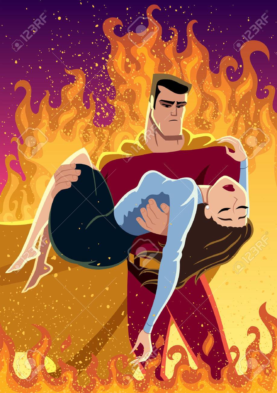 Ilustración De Superhéroe Que Llevaba La Mujer En Sus Brazos. Sin Transparencia Y Degradados Utilizados. Ilustraciones svg, vectoriales, clip art vectorizado libre de derechos. Image 39715430