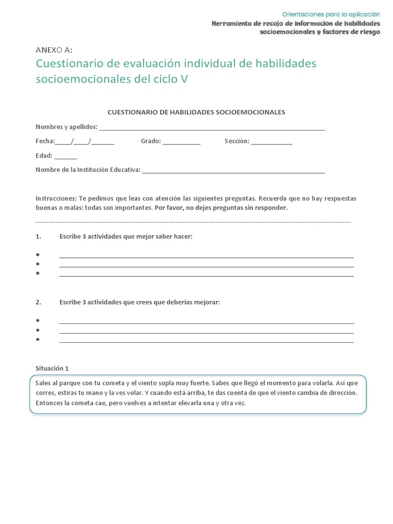 Ciclo V Primaria Cuestionario | PDF