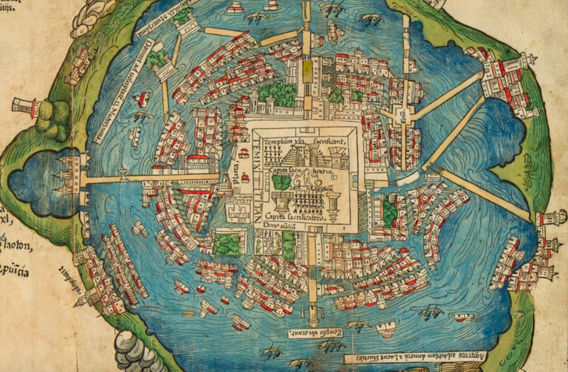 Jorge Mojarro on X: "Ciudad azteca de Tenochtitlán. Plano incluido en la traducción al latín de la segunda carta de Hernán Cortés (Nuremberg, 1524). Copia en @NewberryLibrary (Chicago) #Mexico #maps https://t.co/hZ5CSYbsml" /