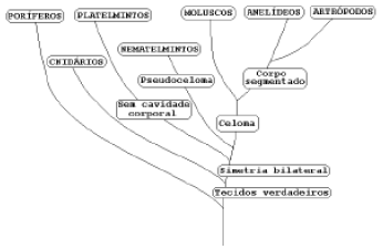 Cladograma simplificado mostrando uma das hipóteses filogenéticas de nove dos cerca de 35 filos do Reino Animal Mais Atual - Biologia