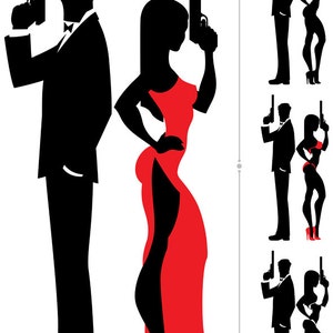 Pareja de espías - Ilustración de dibujos animados vectoriales. agente secreto, familia, 007, hombre, mujer, detective, james bond, silueta, clipart, ...