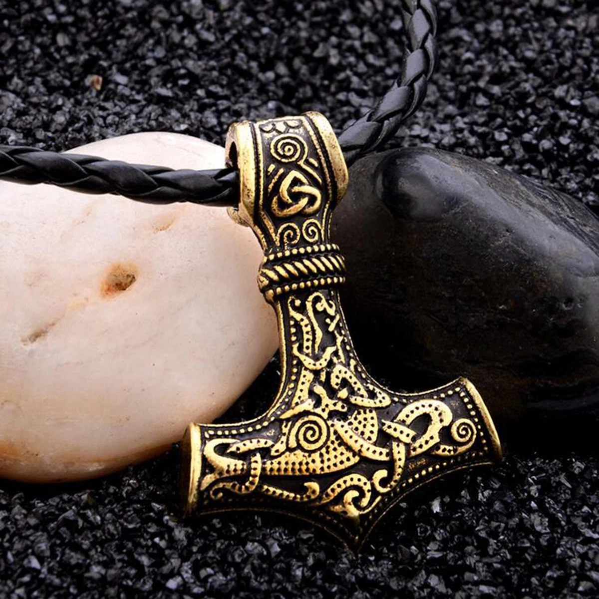 HAQUIL Joyería vikinga Thor Hammer Mjolnir Collar con colgante de martillo de Thor cordón de cuero sintético regalo vikingo para hombres – Yaxa Costa Rica