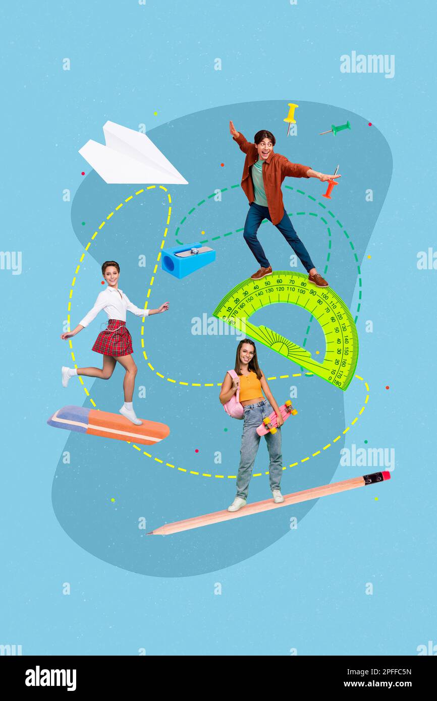 Foto dibujos animados dibujos animados dibujo collage foto de estudiantes despreocupados caminando suministros de educación aislado dibujo de fondo Fotografía de stock - Alamy