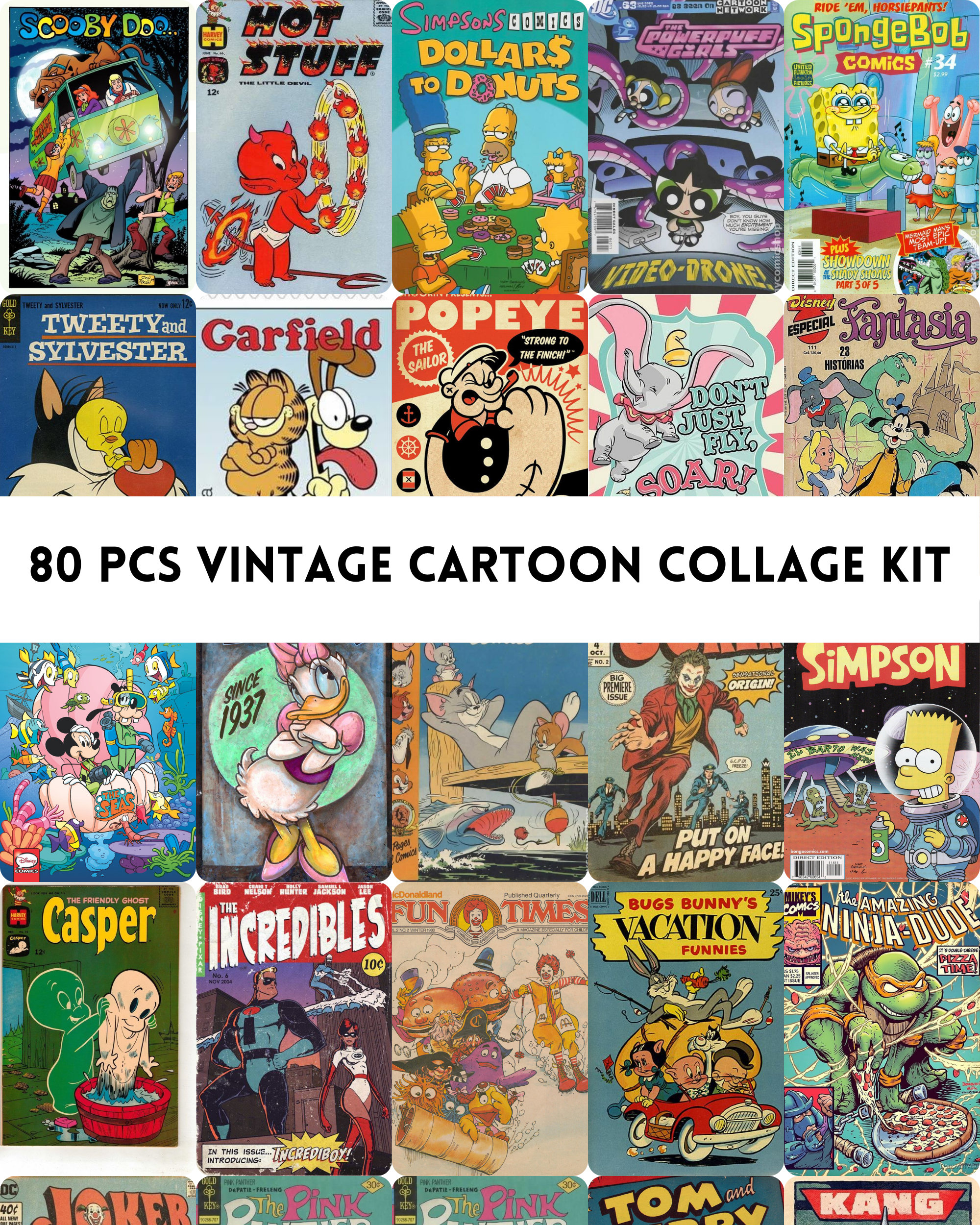 Kit de collage de pared Retro Cartoons Kidcore, estética vintage, decoración vintage, decoración de dormitorio collage, decoración de habitación, DESCARGA DIGITAL - Etsy México