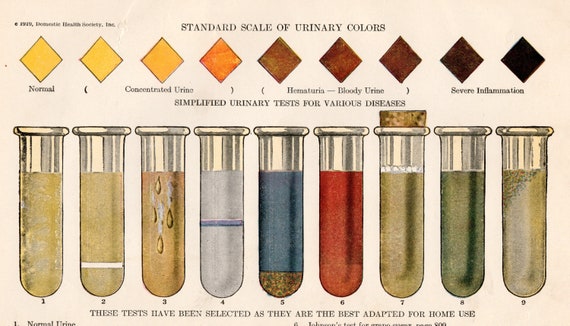 C. 1920 Litografía de URINALISIS grabado antiguo original ilustración médica prueba de orina enfermedad escala de colores de la orina diabetes - Etsy España