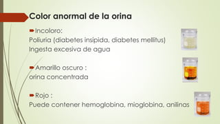 Examen Fisico DE LA Orina - EXAMEN FISICO DE LA ORINA COLOR El color de la orina puede variar de - Studocu