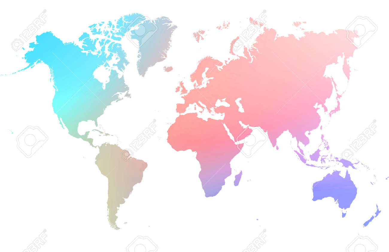 Mapa Del Mundo De Color Arco Iris Degradado Con Fondo Blanco. Plantilla De Mapa Mundial Con Continentes, América Del Norte Y Del Sur, Europa Y Asia, África Y Australia Fotos, retratos, imágenes