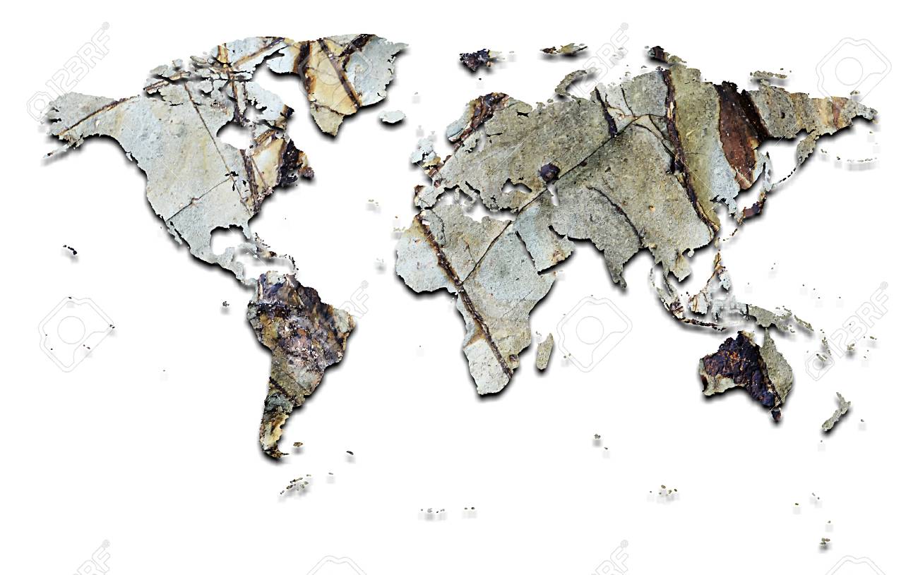 Mapa Mundial Con La Roca De Color Marrón O Textura De Piedra, En El Fondo Blanco Fotos, retratos, imágenes y fotografía de archivo libres de derecho. Image 35981070