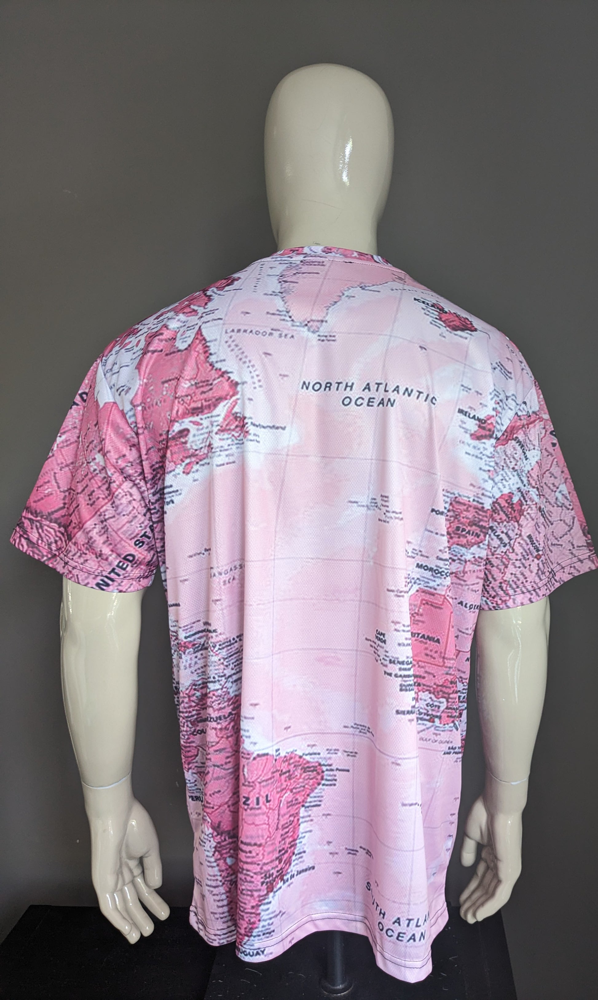 Camisa de estampado de mapa mundial. Pink en blanco y negro de color. – EcoGents