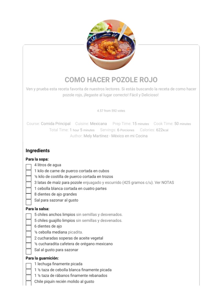 Receta comida mexicana - POZOLE ROJO DE POLLO INGREDIENTES 500 g ...