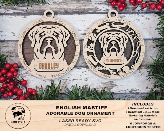 Mastín inglés Adornos adorables para perros 2 adornos incluidos SVG, PDF, descarga de archivos AI Tamaño para Glowforge - Etsy México