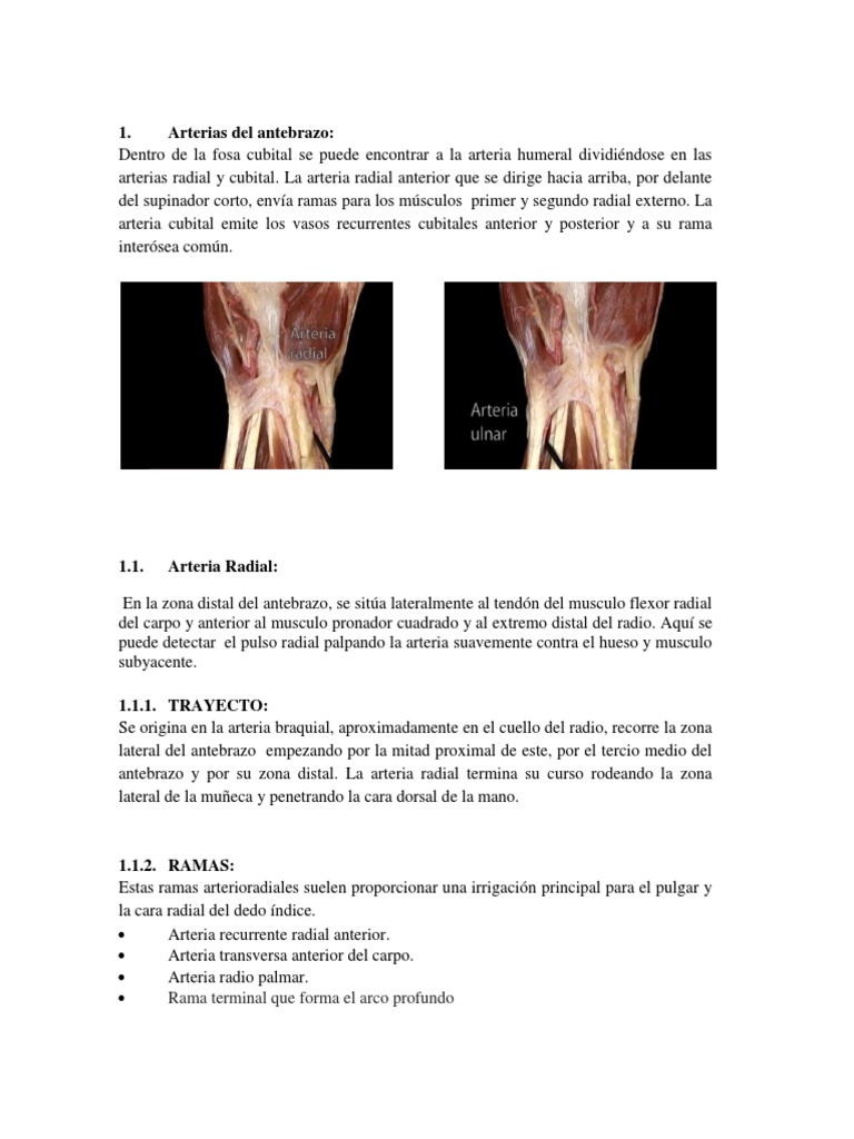 Radial (arteria) | Qué es, ubicación, recorrido, ramificaciones y lesiones