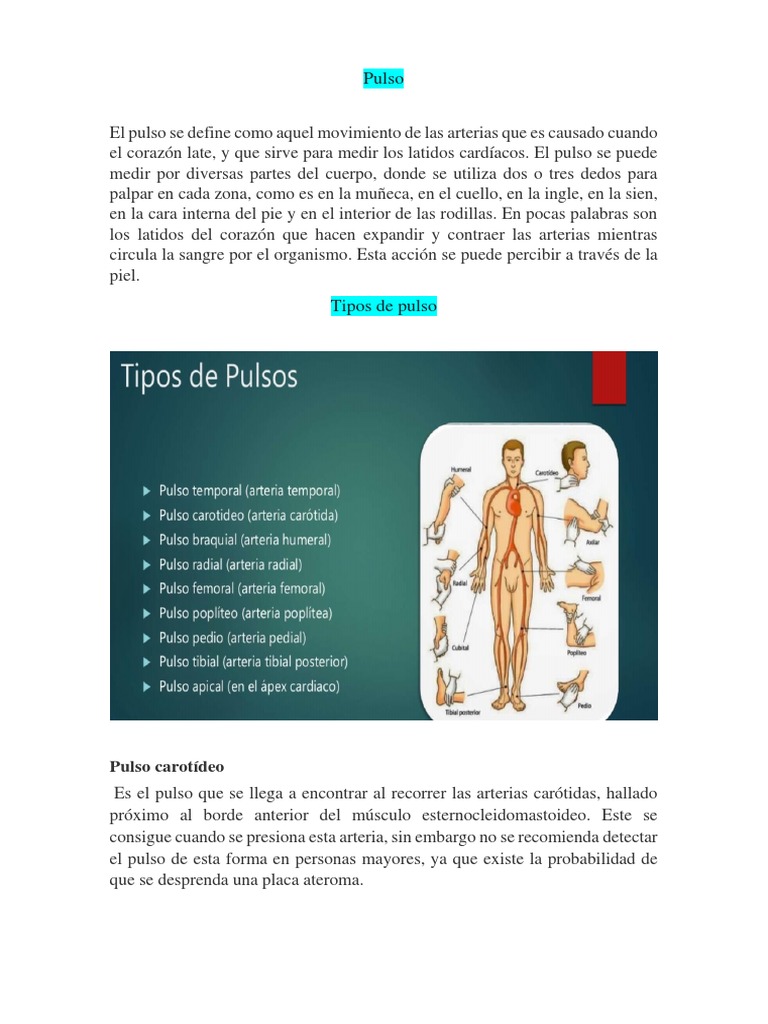 Pulso arterial generalidades | Apuntes de Anatomía | Docsity