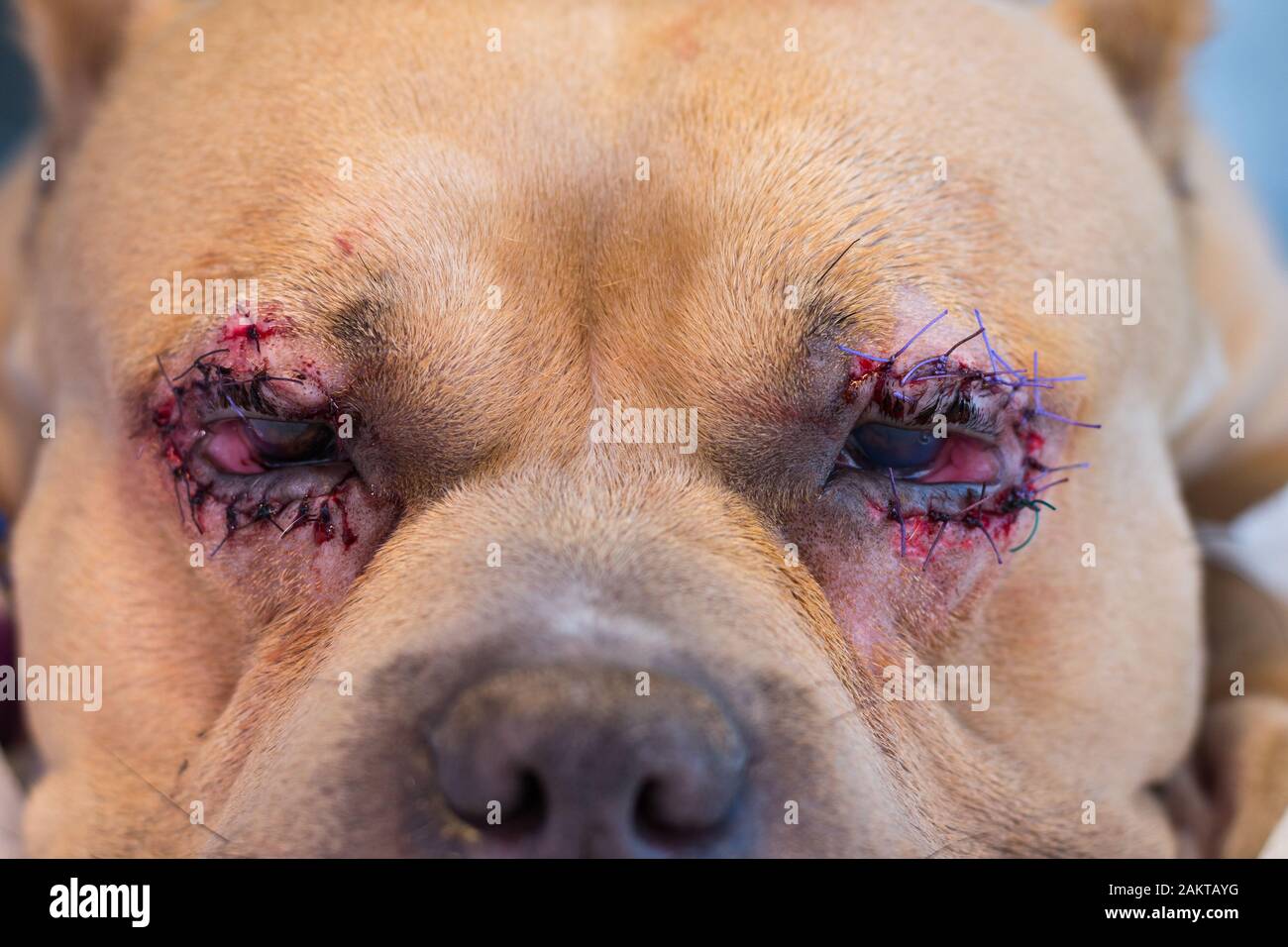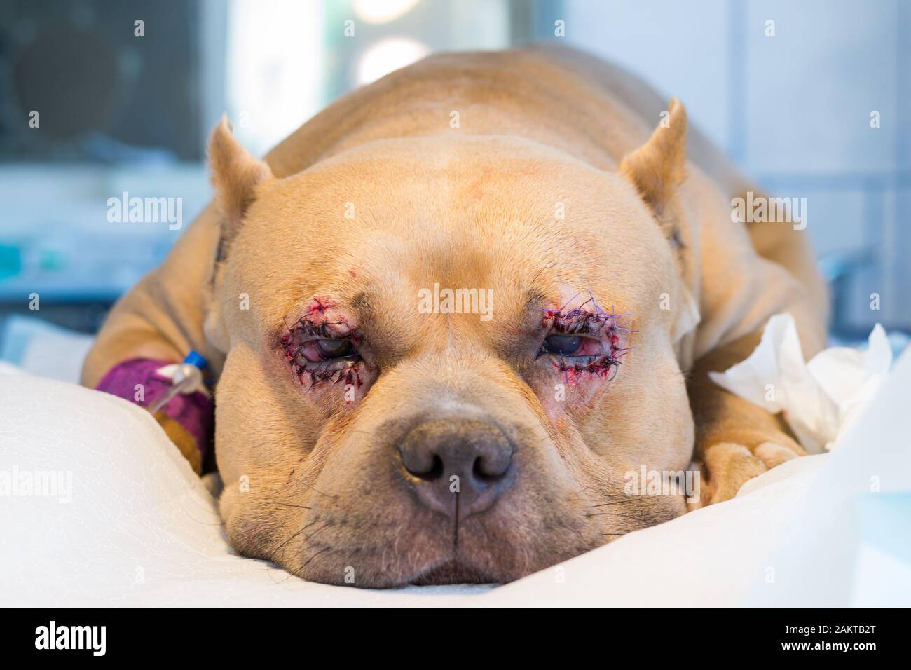 El perro bully americano se cría con entropion y úlcera corneal después de la cirugía Fotografía de stock - Alamy