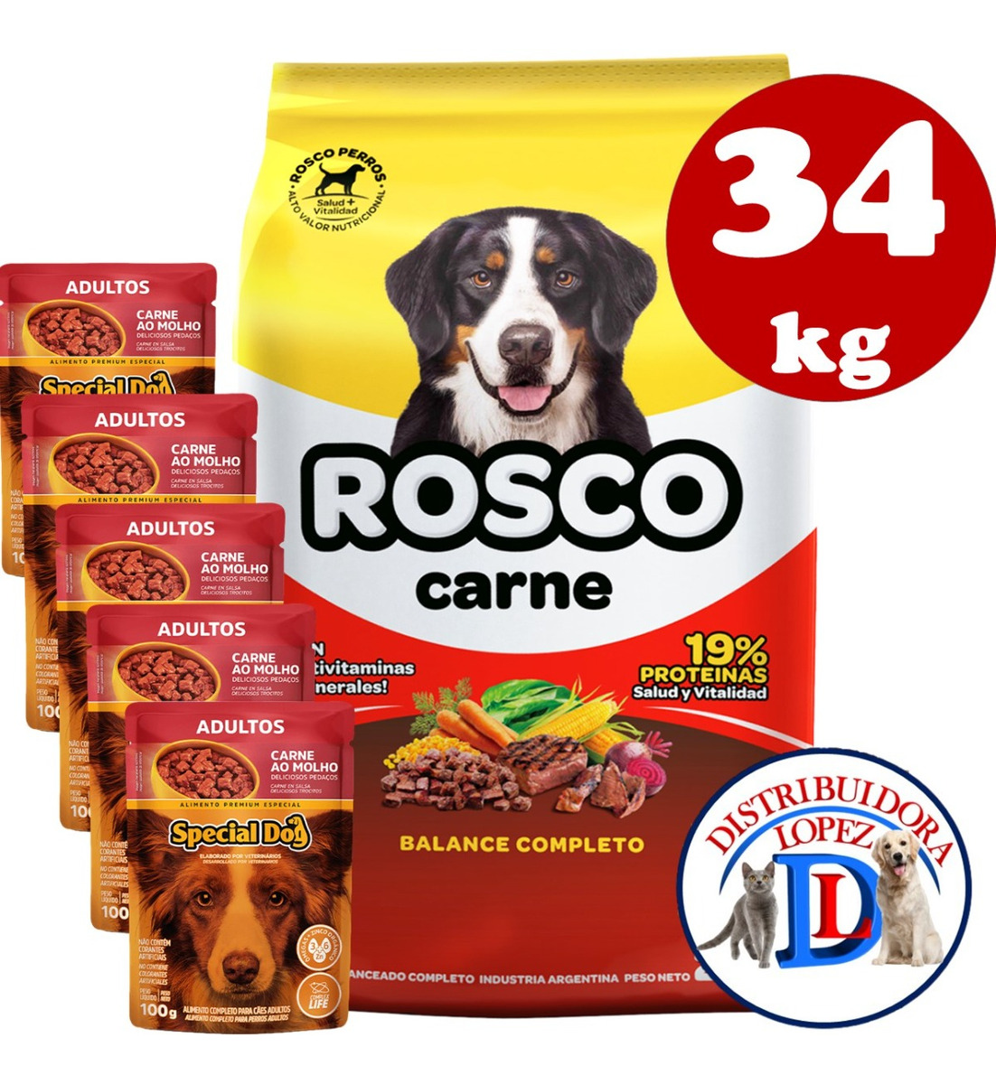 Alimento Para Perros Rosco Adulto 34 Kg + Regalo – Distribuidora López