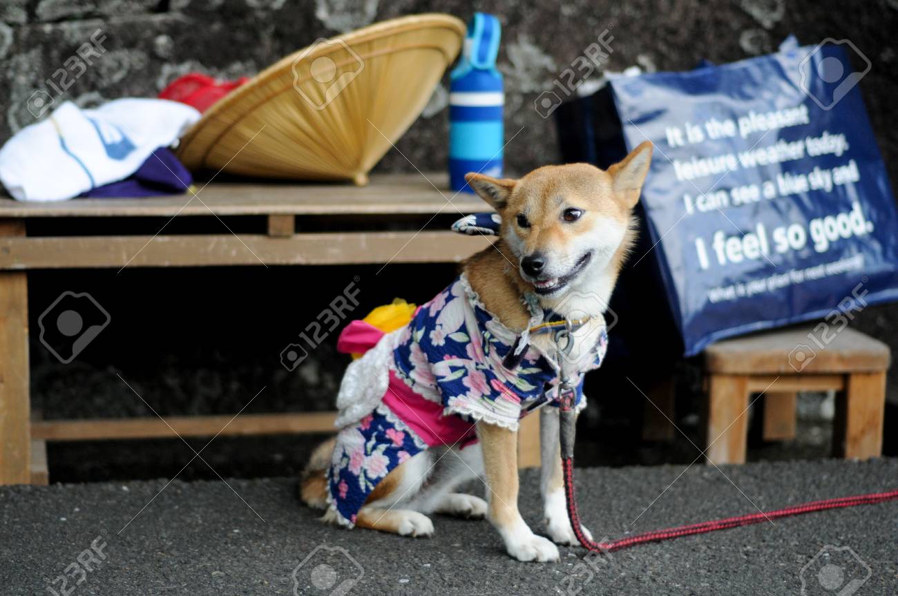 Perro Japonés Durmiendo En La Calle En Shizuoka, Japón. Sign Dice Que Bienvenido! Se Llama Princesa, Nuestra Mascota. Fotos, retratos, imágenes y fotografía de archivo libres de derecho. Image 99469376