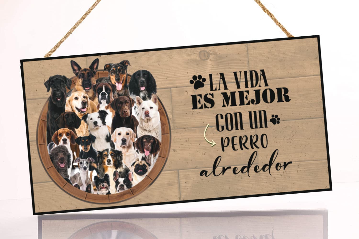 Cartel Decorativo de Madera Perro. Regalo Detalle Original para Amantes de los Animales y Mascotas. Elige la Raza de tu Perro o Gato Preferido y Decora tu casa.Texto Frase en Español. :
