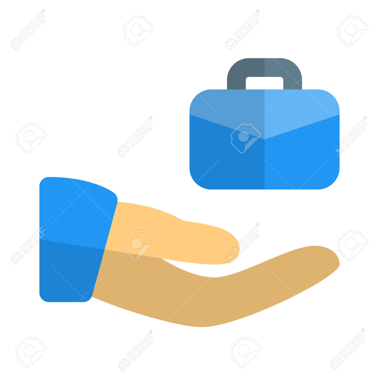 Compartir Conocimientos De Trabajo Con La Mano Y El Maletín Aislado Sobre Fondo Blanco. Ilustraciones svg, vectoriales, clip art vectorizado libre de derechos. Image 180407766